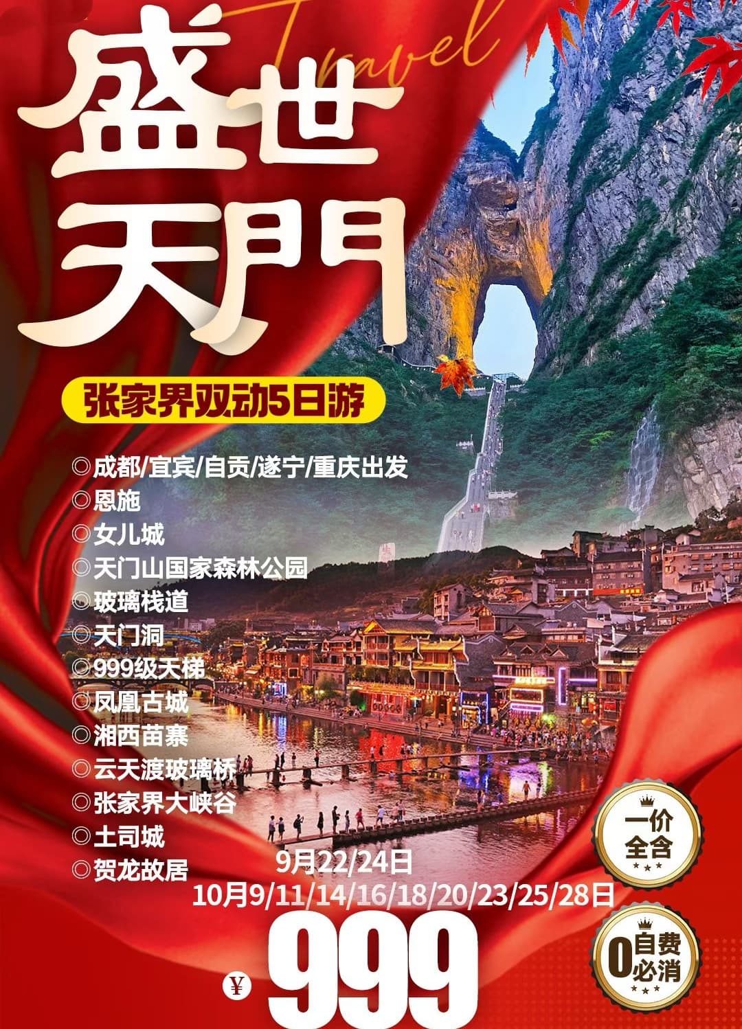 【立戰國旅】10月18-22日(盛世天門)張家界雙動5日游